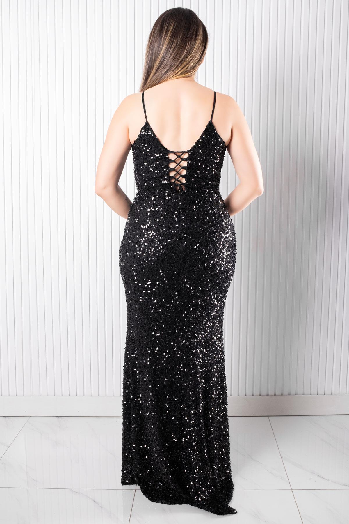 Sırt Bağlama Detaylı Abiye Elbise Siyah MDV384 (MDV384-SİYAH)